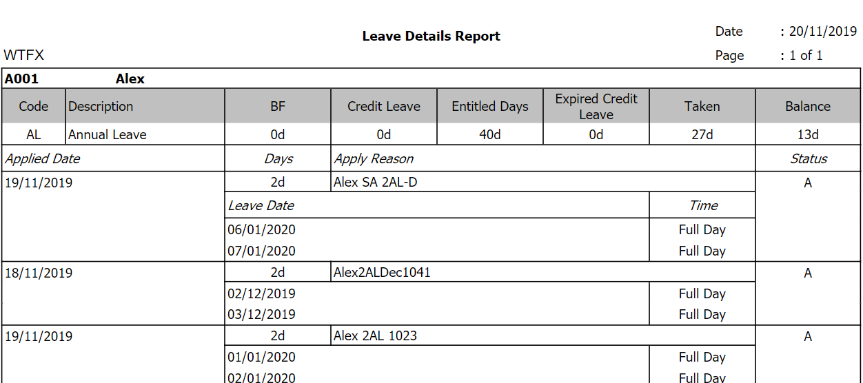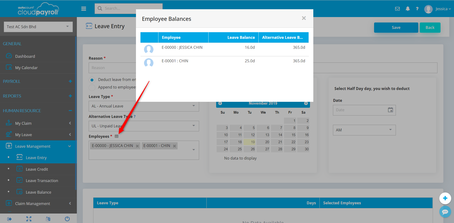 3. (Leave) Leave balance info showed at the Leave Entry screen