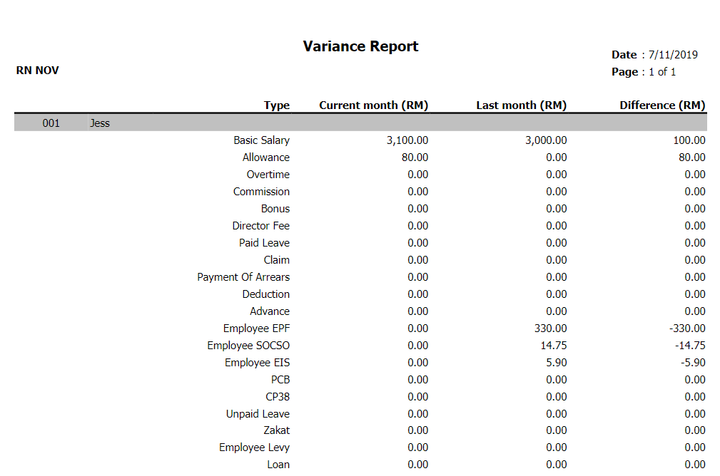 A new report has added in the system to show user on the variance of the payment compare to previous month.