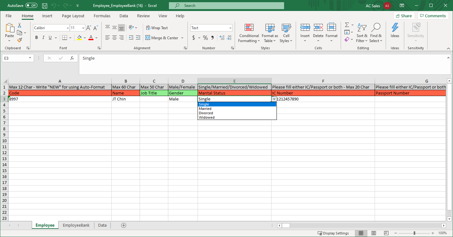 Now with the new format of the excel import templates, users are able to select the data available in the system and auto create the record if the record that entered doesn’t exist in the general maintenance, e.g. Department.