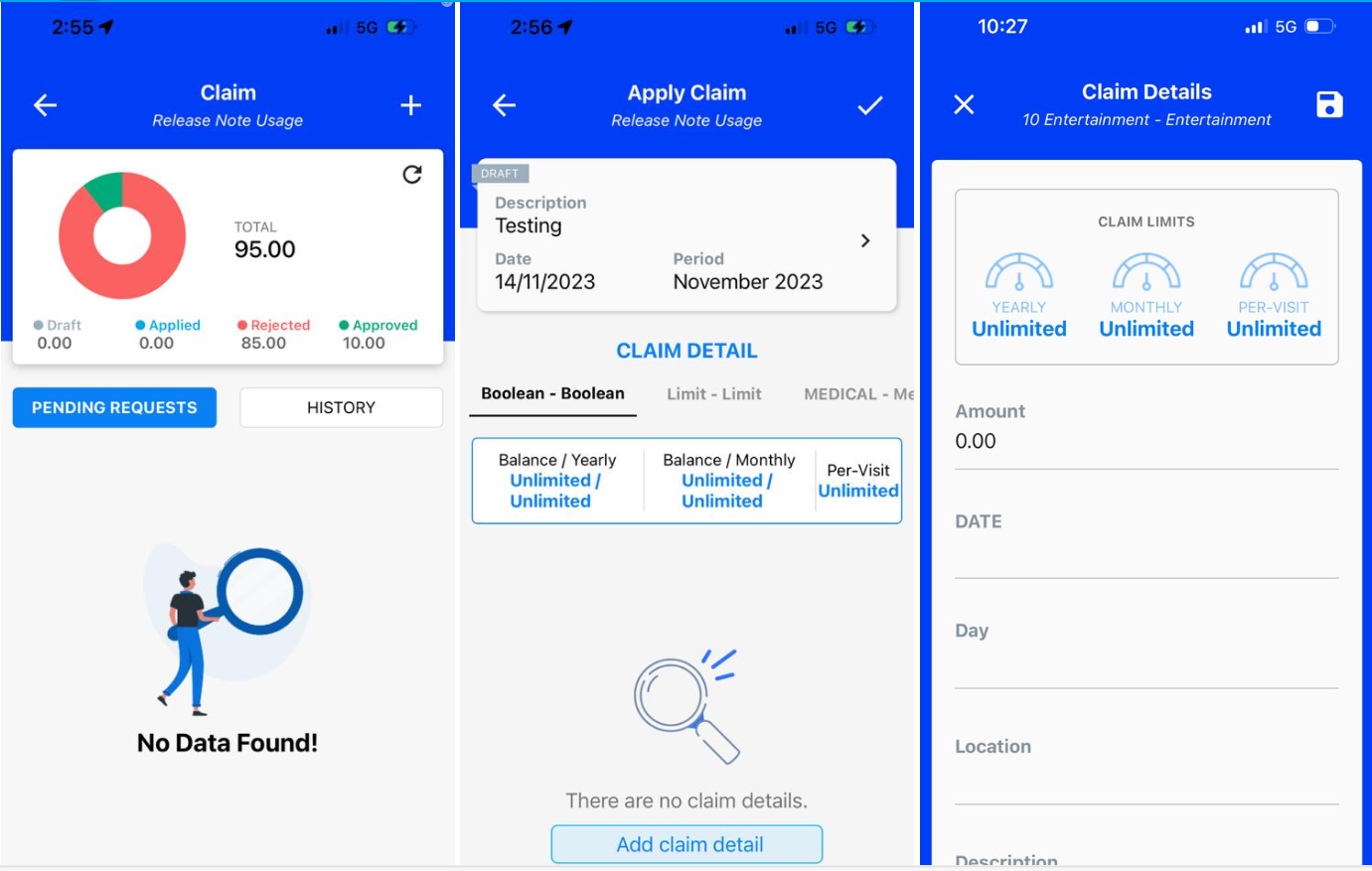 4. Fixed claim limit checking issued when employee submit more than 2 sub claim records.