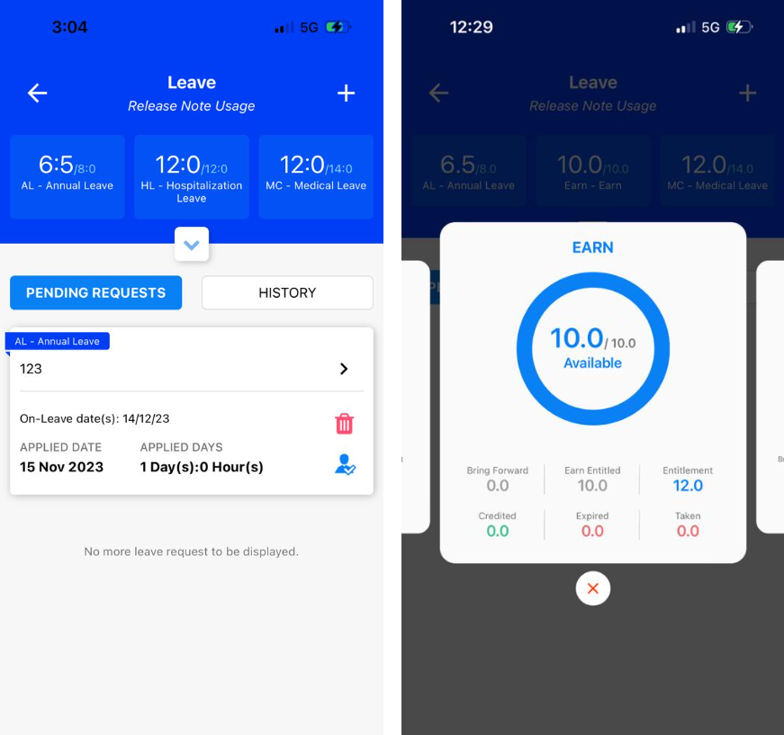 3. New Layout for Displayed Leave Information and allowed to view yearly leave entitlement as well as earn leave concept leave type.