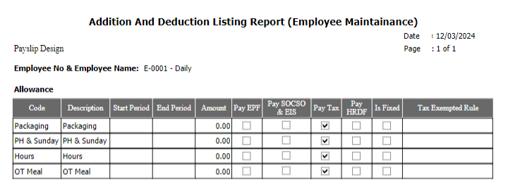 Go to Reports > Employee Report > Addition and Deduction Listing Report