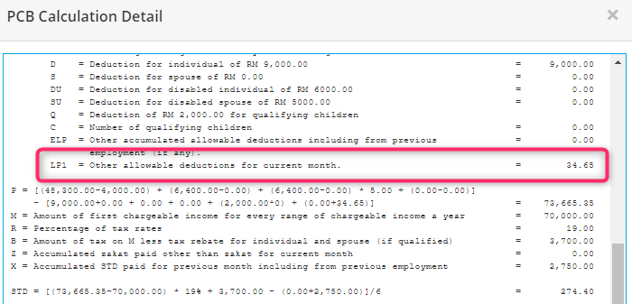 PCB Calculation Detail will also be stated under LP1 for that tax relief amount.