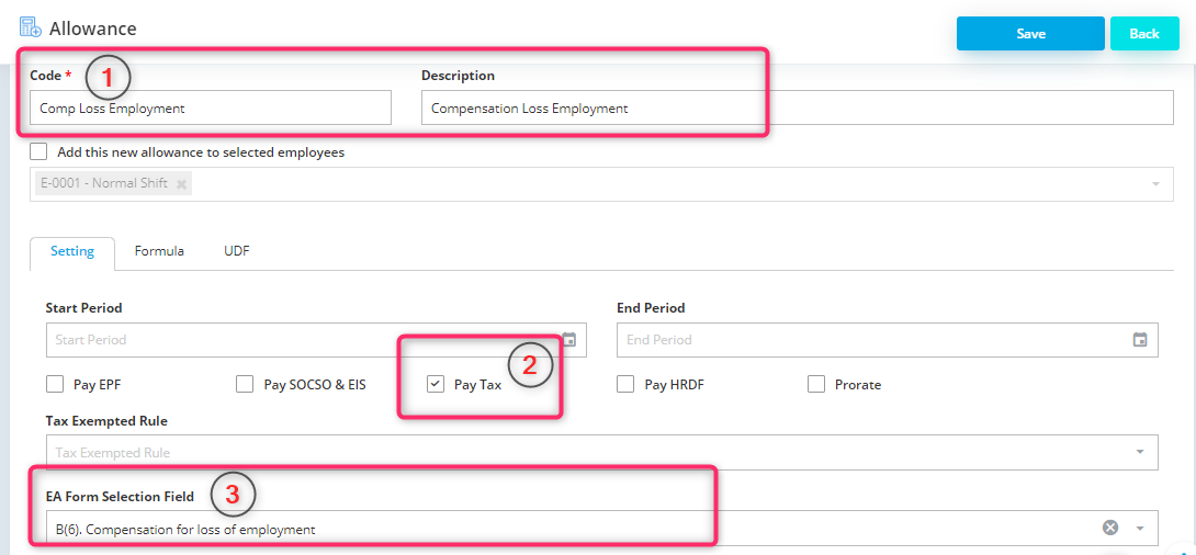 3. Additional Custom Fields in Allowance & Deduction for EA Form.