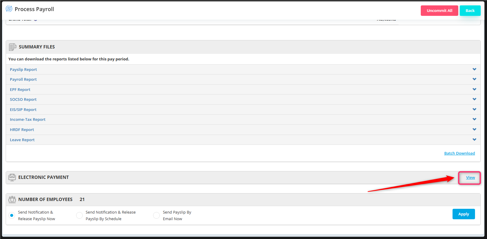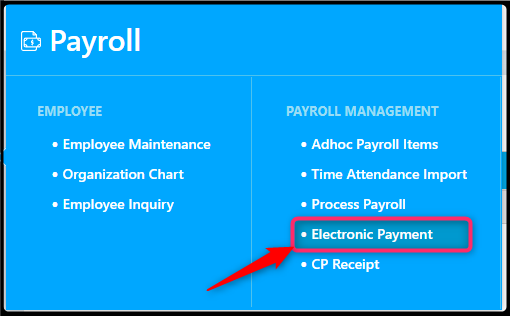 1. Go to Payroll > Electronic Payment under Payroll Management.