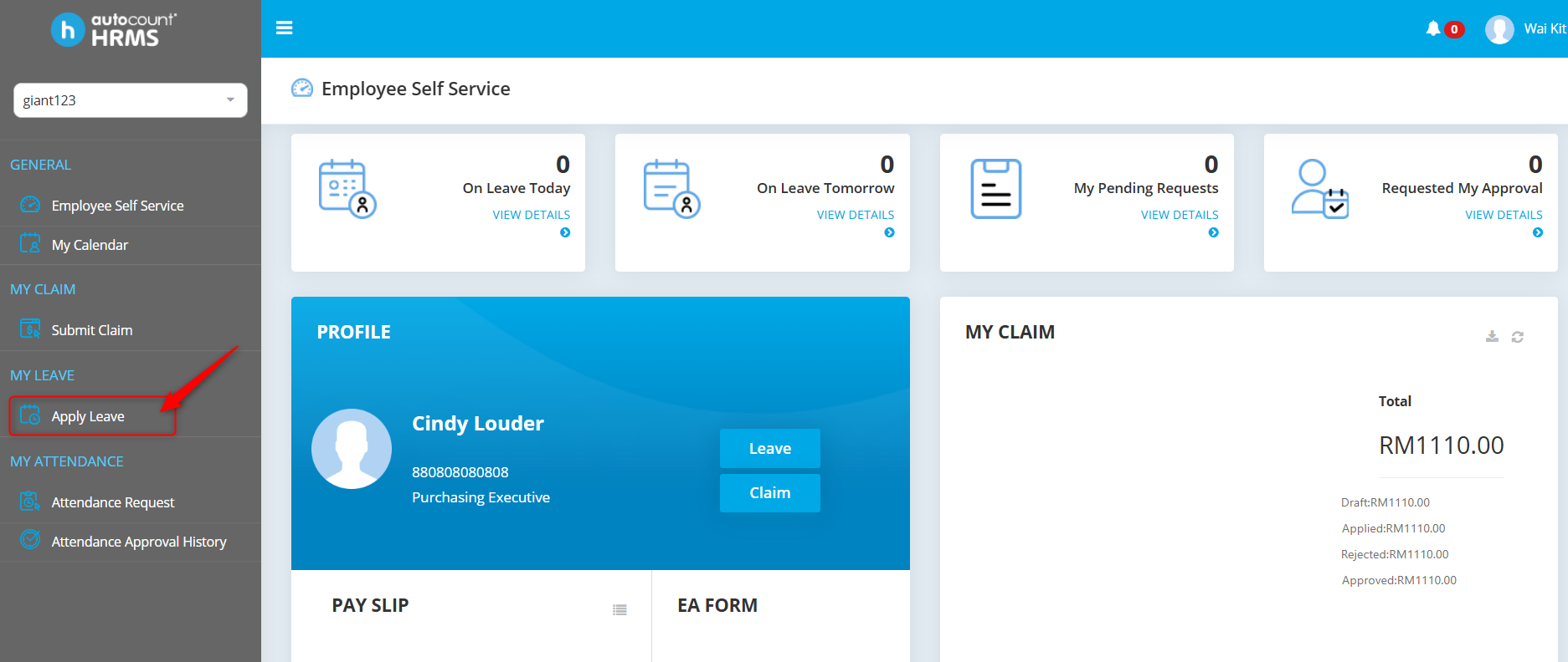 Select the Leave Type and select the date you would like to apply and key in the reason.