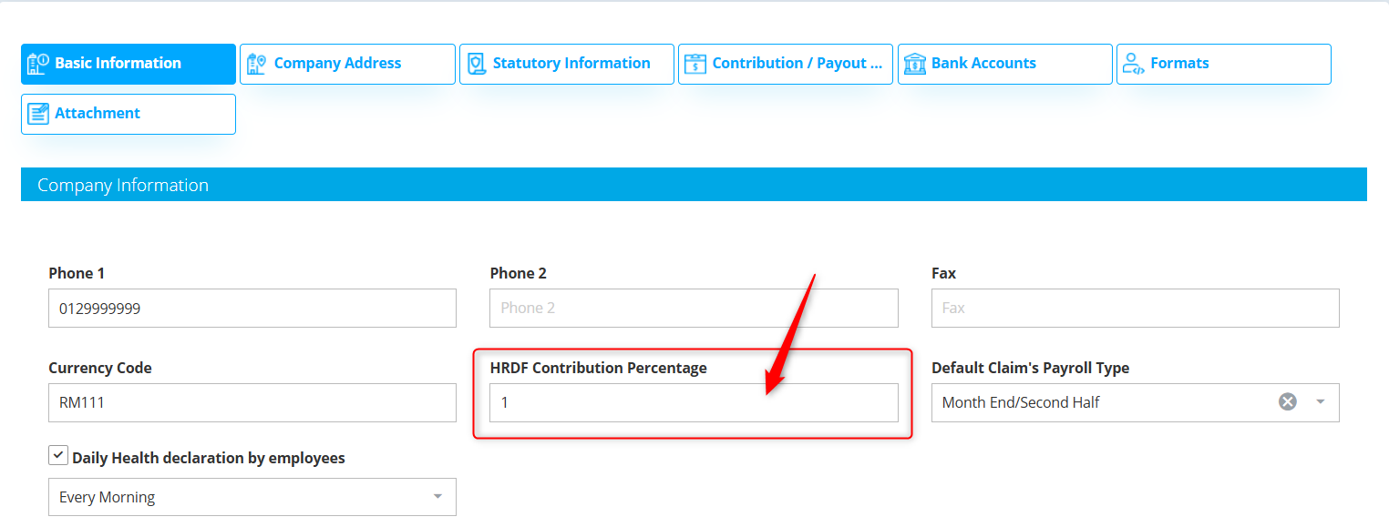 To setup HRDF Contribution for your company, go to Tools > Company Profile.