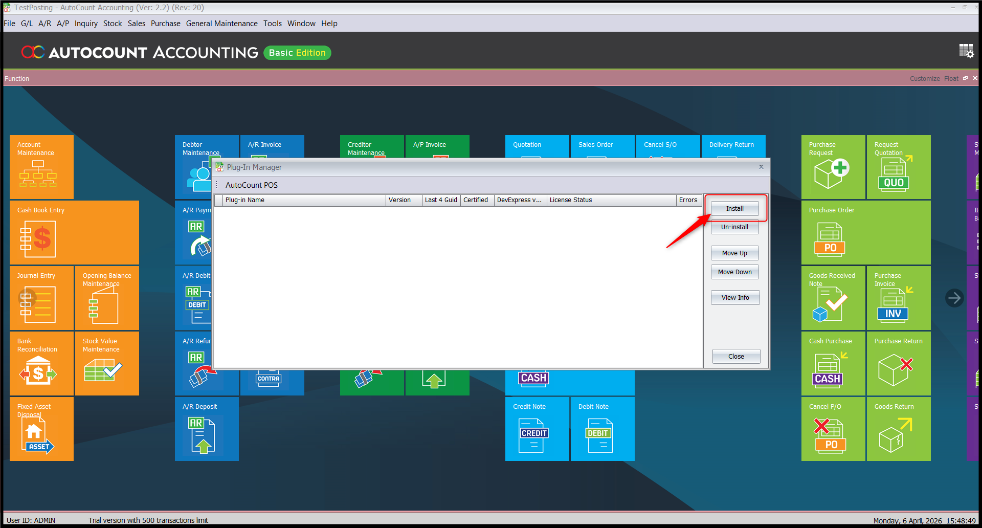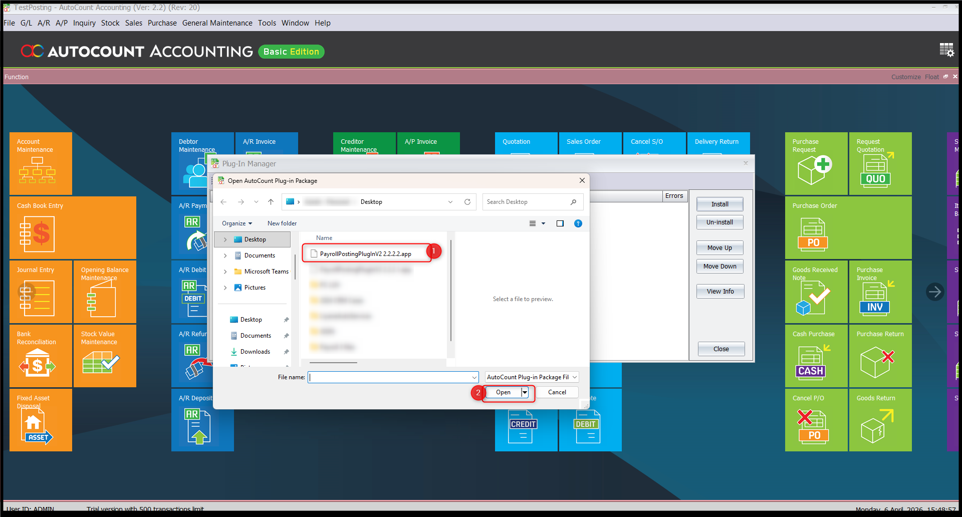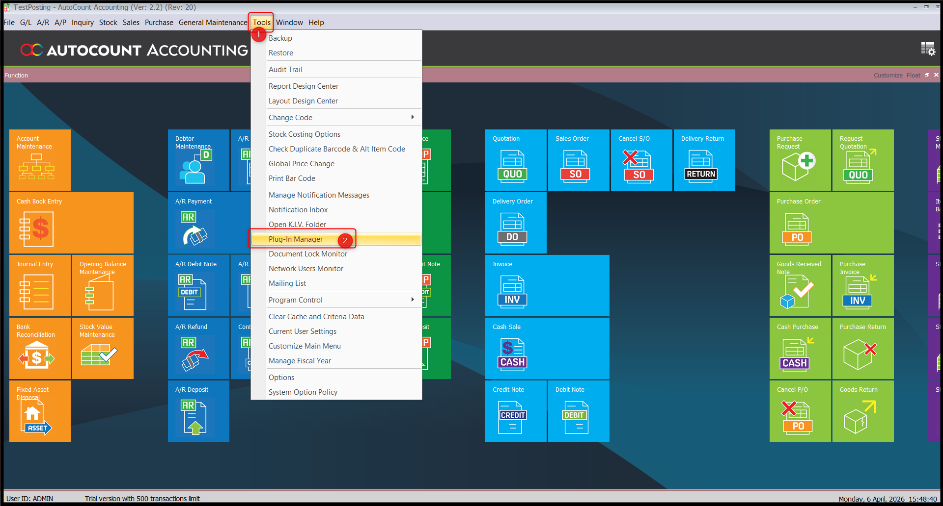 - Click to Download the plugin (choose the version based on your AutoCount Accounting version, e.g., AutoCount Accounting V2).