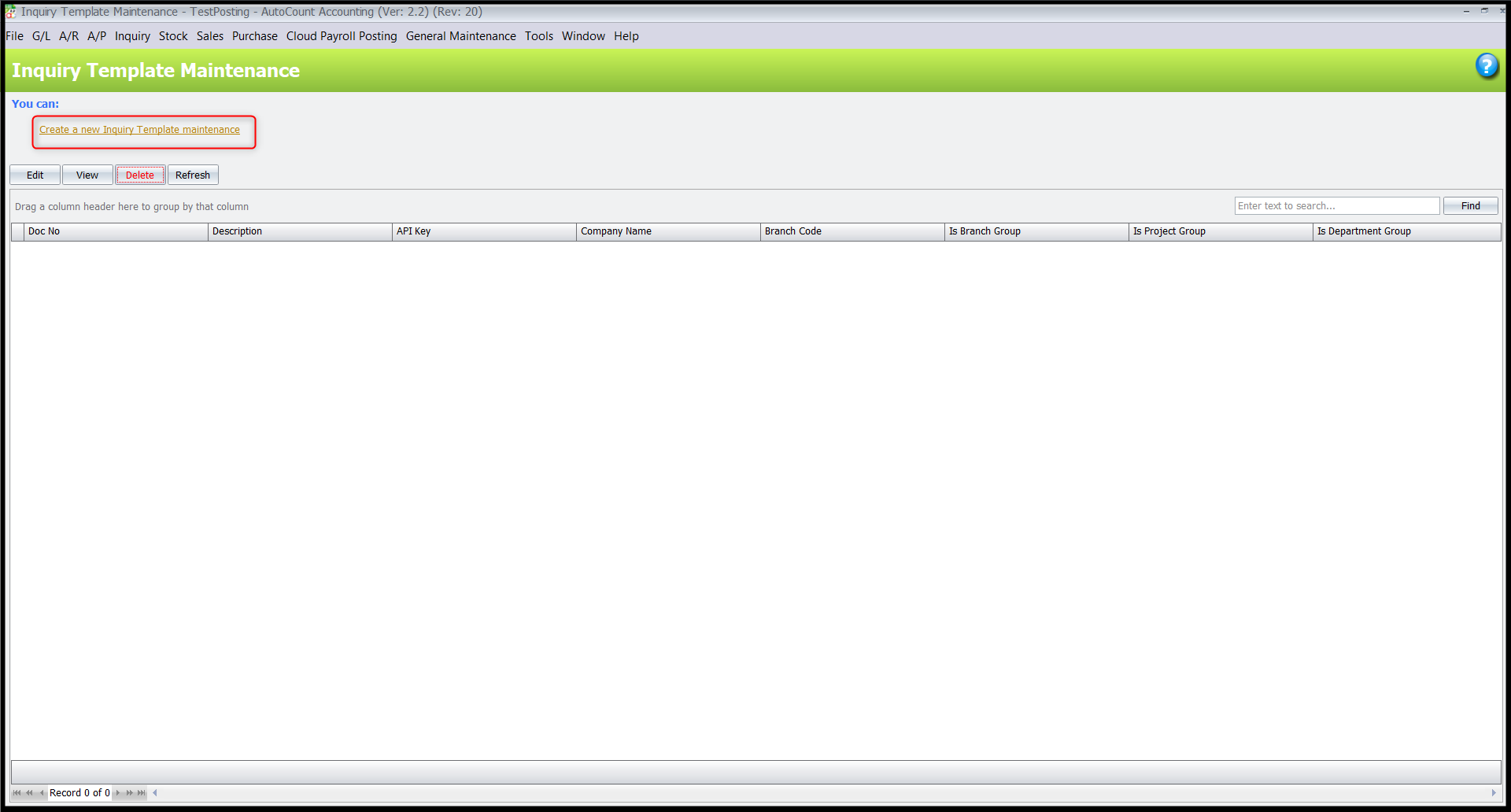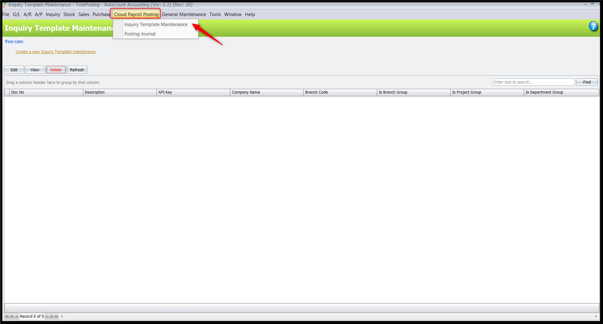 - Go to Cloud Payroll Posting > Inquiry Template Maintenance.